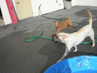 "Don't mind me, I'm just waiting for the hose to come back on!"